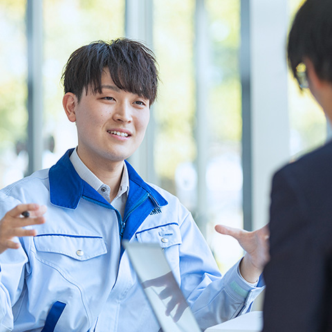 価格交渉は基本的に仕入先が来社し、対面で実施。妥協せず、会社に有益であるかを考え、毅然とした姿勢で臨みます。ただそれには、ざっくばらんに話せるような関係構築が大切で、プライベートの話をしたり、案件がないときにも電話するなどして距離を縮めています。見積りどおりの作業をしているかを、仕入先の工場へ視察に行くこともあり、コミュニケーションを深めるいい機会にもなっています。交渉相手は仕入先企業の社長であることが多く、父より年上の人も。仕入先の方との折衝で双方の納得が行く妥協点でまとめられたときが、手ごたえを感じる瞬間です。